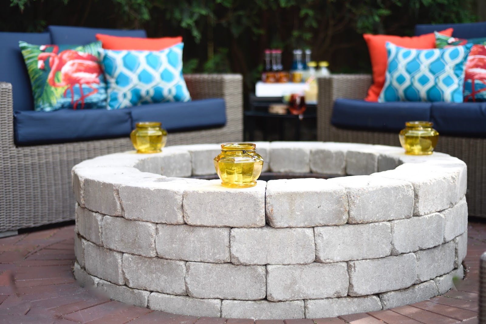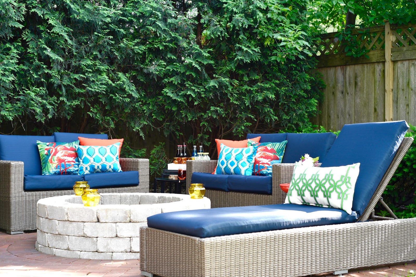 I am so excited summer is here, cause that means I get to style my outdoor living spaces. Two years ago I started investing in the heavy furnishings for our two outdoor living spaces. We have a side “entrance” deck and a firepit lounge area. All the spaces were lacking in, well, in everything. At the end of last summer I finally purchased our last set of lounge chairs. Yes, I waited for the end of summer sales. So, when summer finally came around last week I was eager to enjoy our outdoor spaces, but then, my heart sank. It was so blah. Like literally, just a bunch of brown furniture with blue cushions. I knew I needed to add pops of color and my one stop shop is World Market.